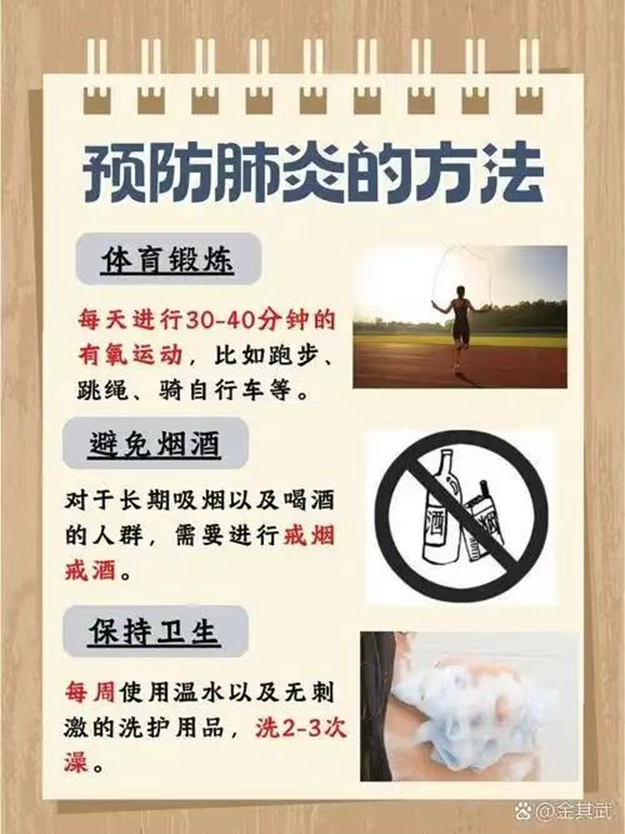 肺炎是由细菌、病毒等病原体感染引发的肺部炎症,具有一定传染性,严重影响人体健康。校园内人员密集、交流频繁,若防控不当易造成传播扩散。全体师生需提高重视,主动学习肺炎防控知识,增强自我防护意识,共同筑牢校园健康防线。