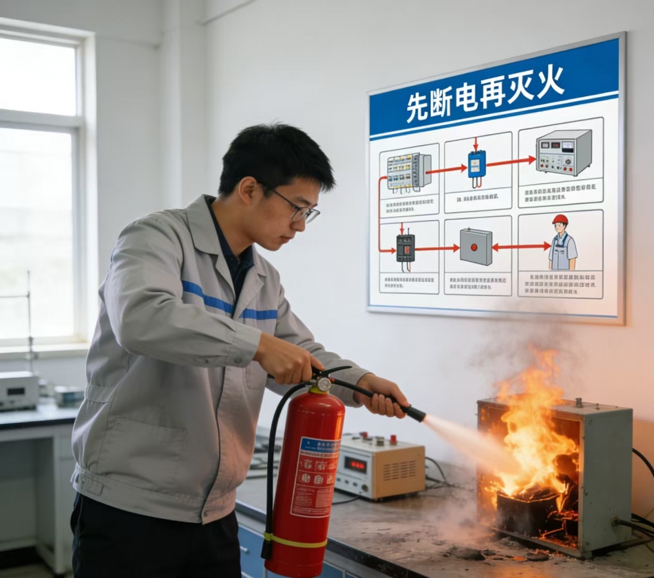 3. 主动学习电气火灾应急处置知识,熟悉灭火器使用方法,若发生小型电气火灾,先切断电源再用干粉灭火器灭火,火势扩大时立即撤离现场并拨打校园报警电话求助。