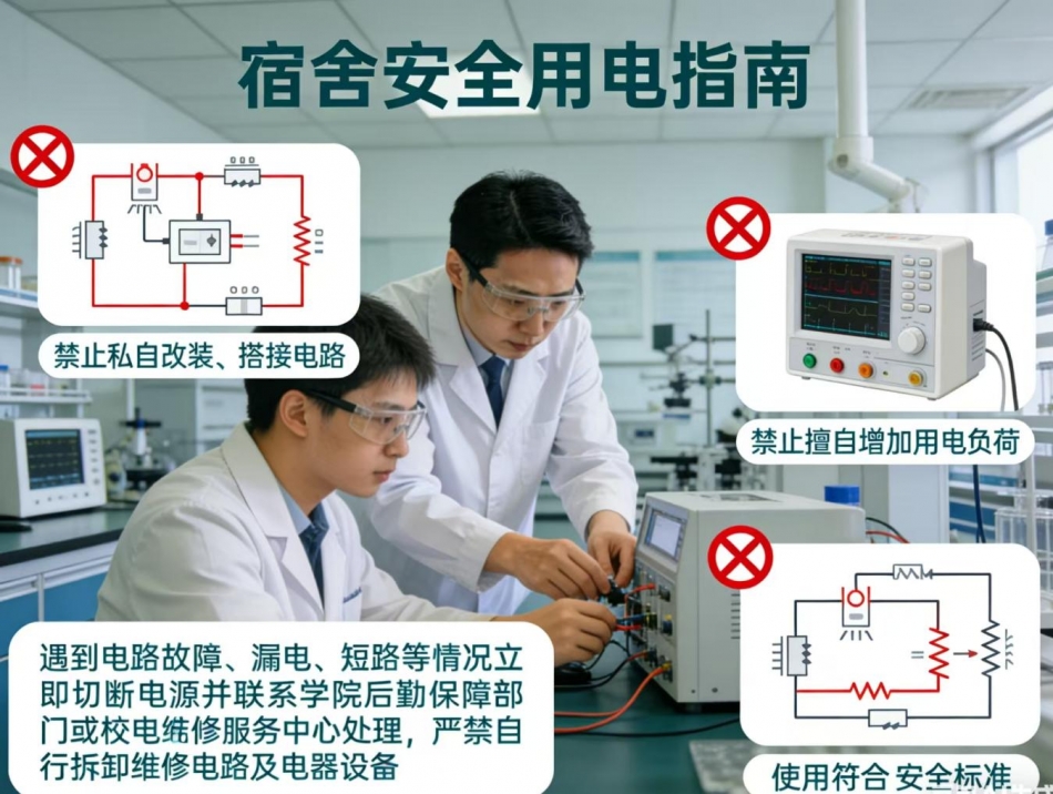 1. 实验室、教研室用电设备需由专业人员安装调试,严禁私自改装、搭接电路,不得擅自增加用电负荷,避免因线路过载引发故障。