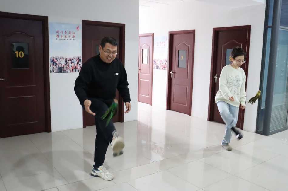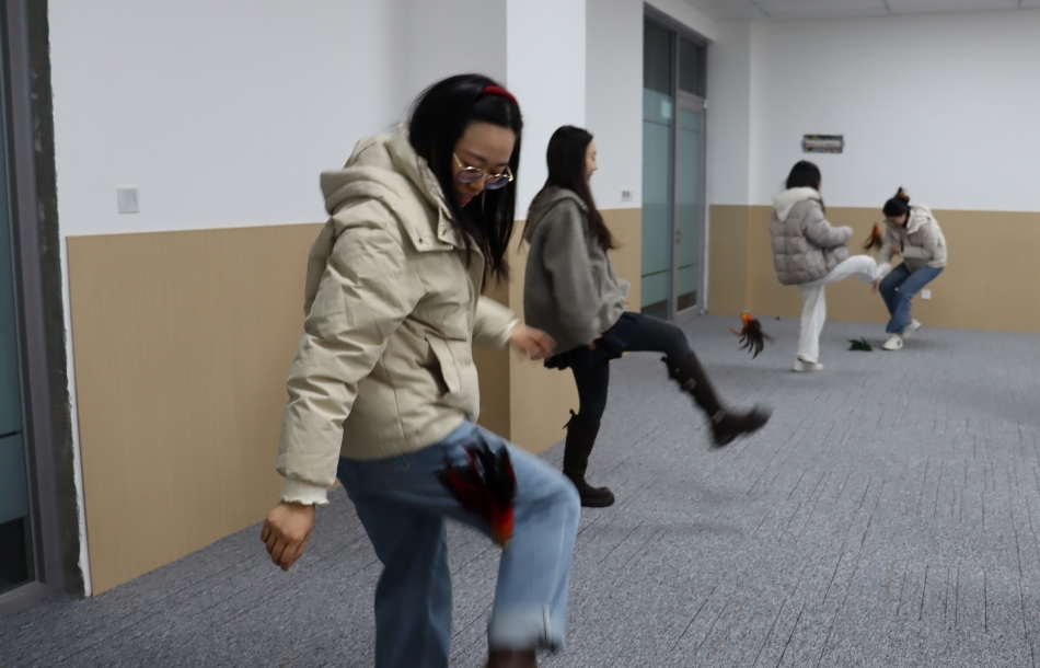 为丰富教职工课余文化生活,增强教师身体素质,营造健康向上的学院氛围,我分工会分两个校区开展比赛,惠济区于11月24日中午13:00在办公区域开展;航空港区于11月26日中午13:30在A2-1楼成功举办了教职工单踢毽子比赛。惠济区校区由于天气的原因,有室外改成室内举行,但是也不影响大家的热情。30多名教职工踊跃参与,以轻盈的身姿、灵动的技巧展开了一场充满活力与欢笑的竞技盛宴,最终比赛在热烈的气氛中圆满落幕。
