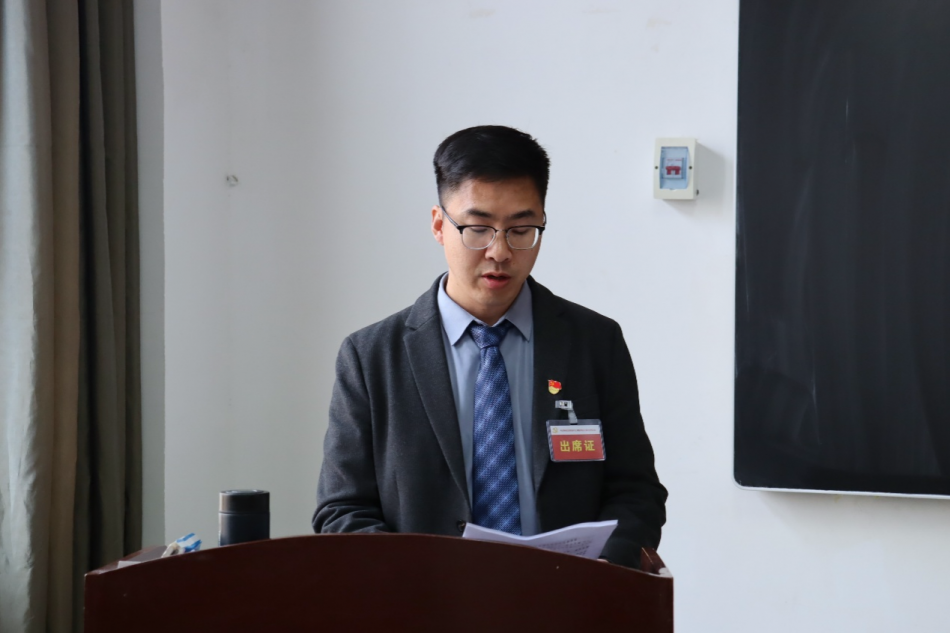学院总支书记许天亮代表上一届总支委员会做大会工作报告。报告全面回顾上一届总支委员会在政治建设、思想建设、组织建设、作风建设、纪律建设和制度建设方面取得成效,既肯定了全体党员并肩奋斗的丰硕经验成果,也客观梳理了工作中存在的不足,为科学谋划未来党建工作蓝图奠定了基础。